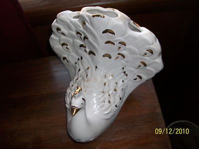 Title (ebay affiliate link): Capodimonte Gold Trim OnWhite Peacock Vase Italy Crown