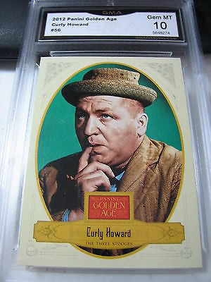 Title (ebay affiliate link): CURLY HOWARD THE THREE STOOGES 2012 PANINI GOLDEN AGE # 56 GRADED 10