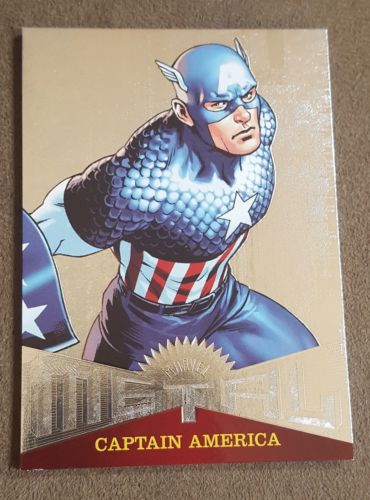 Title (ebay affiliate link): 2017 Marvel Fleer Ultra Spider-Man Marvel Metal Insert Captain America MM45