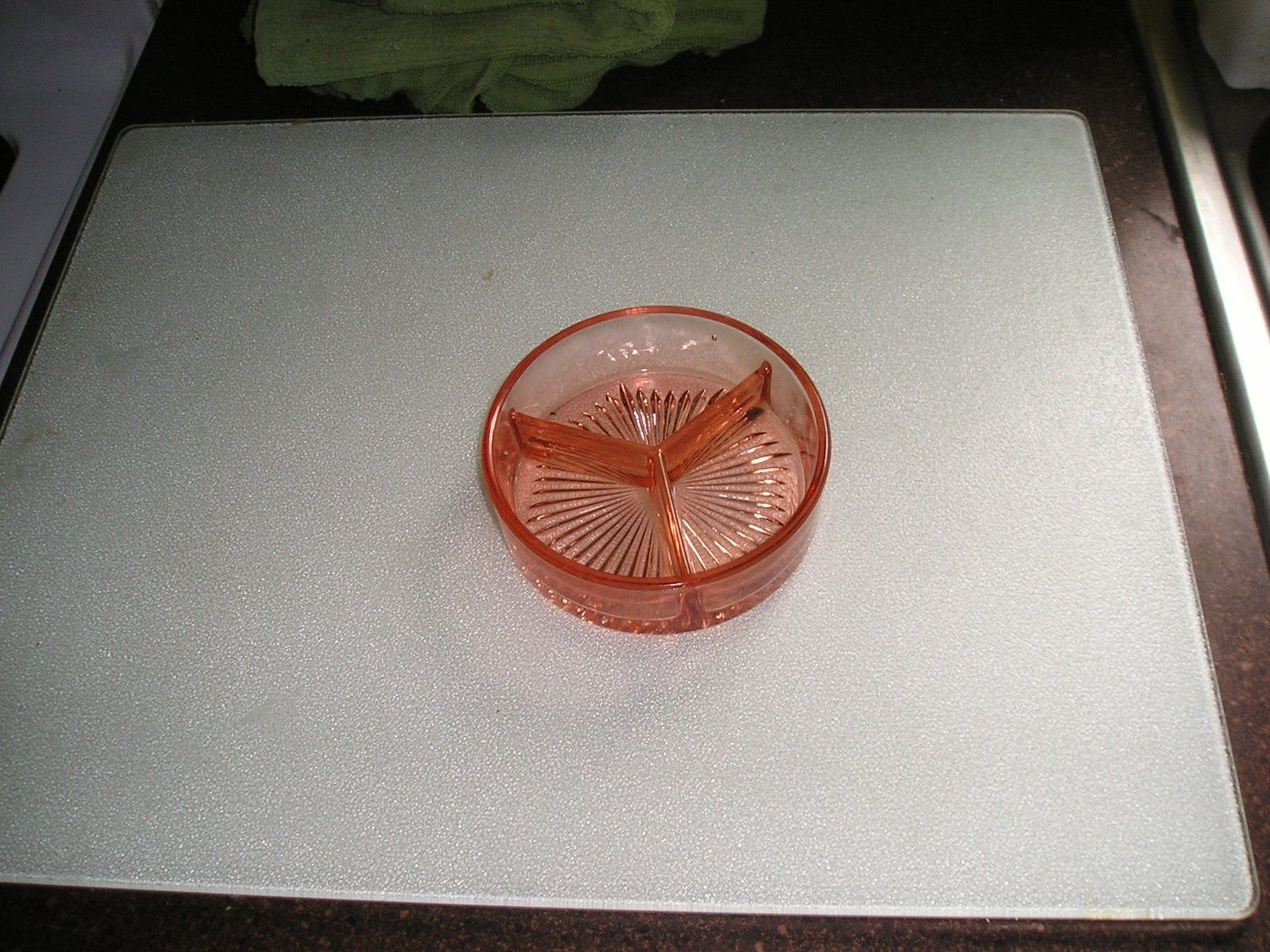 VINTAGE PINK DIVIDED DEPRESSION GLASS ROUND DISH