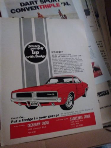 dodge charger ad rare rt r/t 69 hemi vintage 440 dealer photo poster