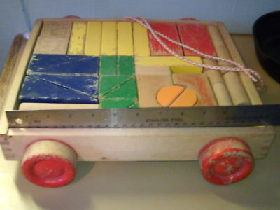 Vintage Wooden Toy Wagon with Wood Blocks Played With