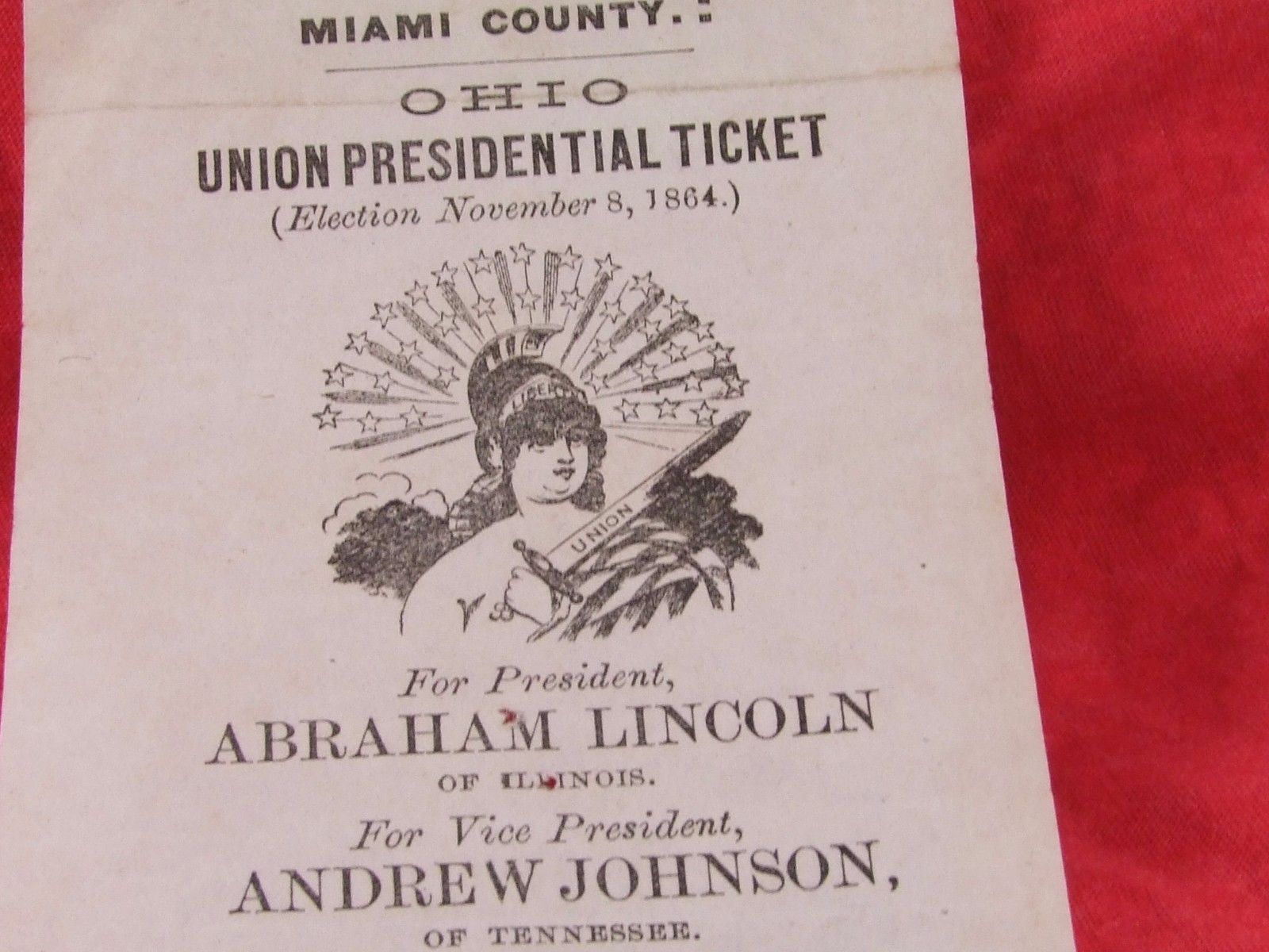 Title (ebay affiliate link): Abraham Lincoln- Andrew Johnson, Miami County, Ohio, Union Presidential Ticket N