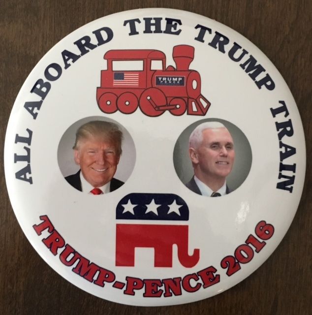 Title (ebay affiliate link): 6" Trump-Pence 2016 All Aboard the Trump Train Campaign Pinback Button