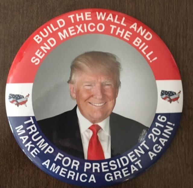 Title (ebay affiliate link): 6" Trump for President "Build the Wall and Send Mexico the Bill" Pinback Button