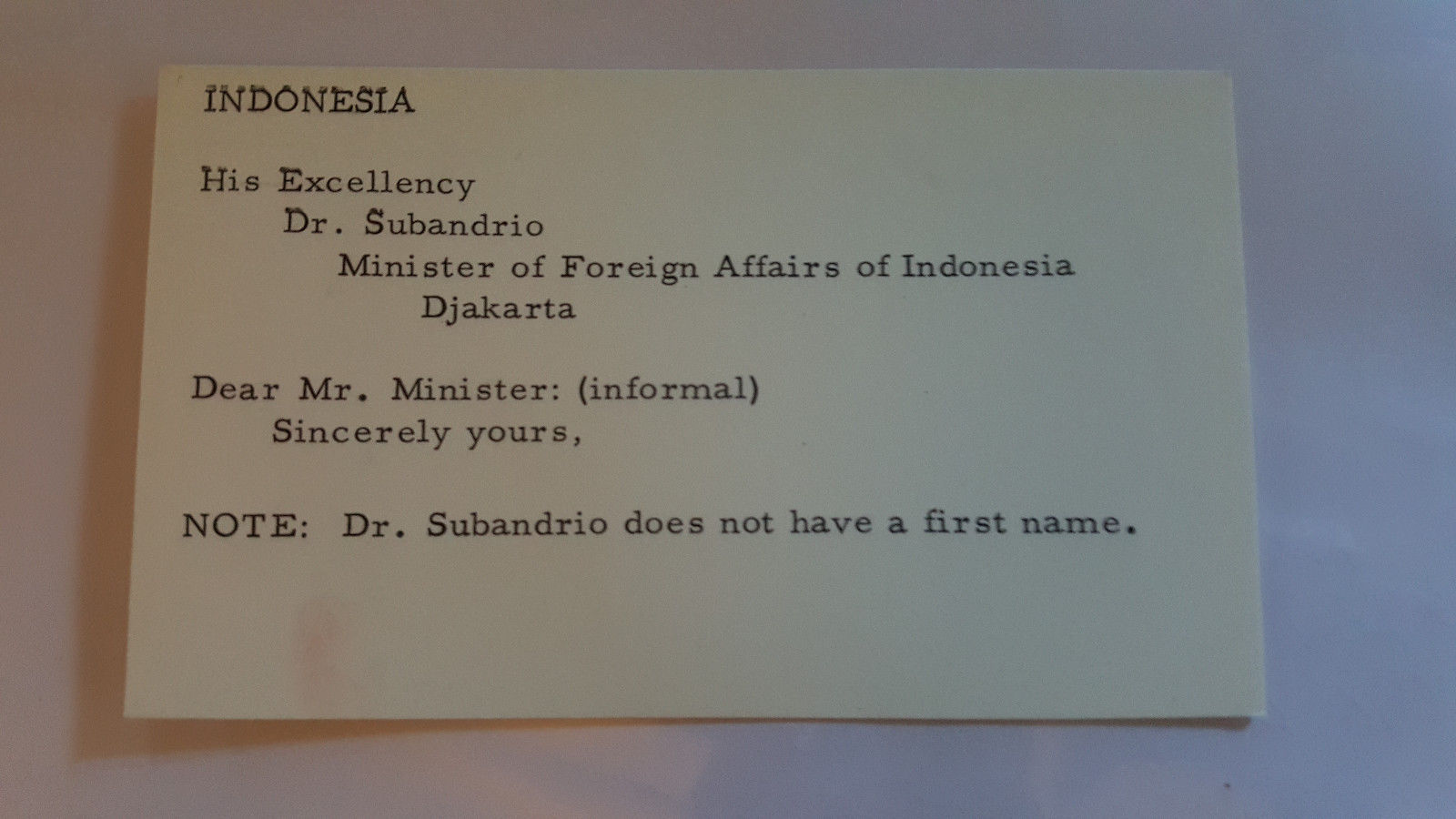 Title (ebay affiliate link): JFK ''s Personally Owned " Call Card " for INDONESIA