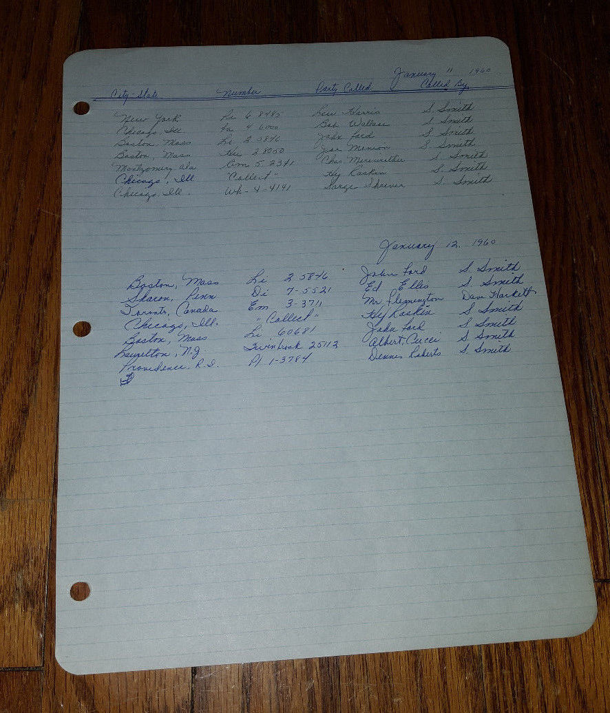 Title (ebay affiliate link): JFK Personally Owned Used Call Log Written by Evelyn Lincoln Jan 11 & 12, 1960