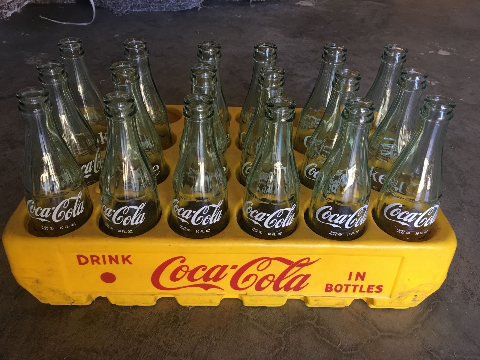 Title (ebay affiliate link): Vintage Yellow Coca-Cola case crate bottle holder with 18 10 oz bottles