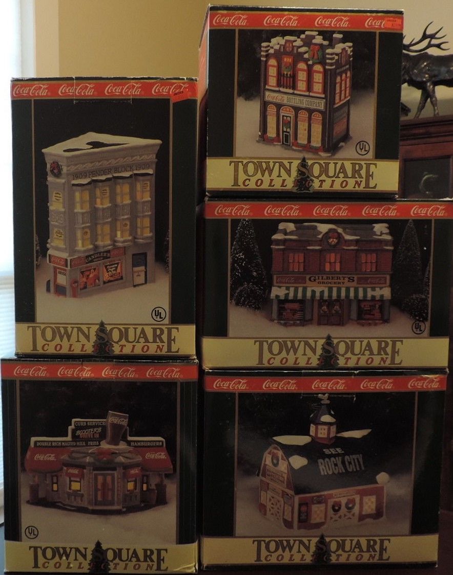 Title (ebay affiliate link): Lot of 5 Coca-Cola Town Square Village Collection boxed Coke Buildings NOS