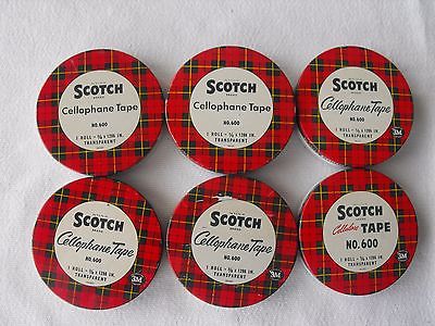 LOT 6 VINTAGE SCOTCH CELLOPHANE TAPE METAL TINS NO. 600
