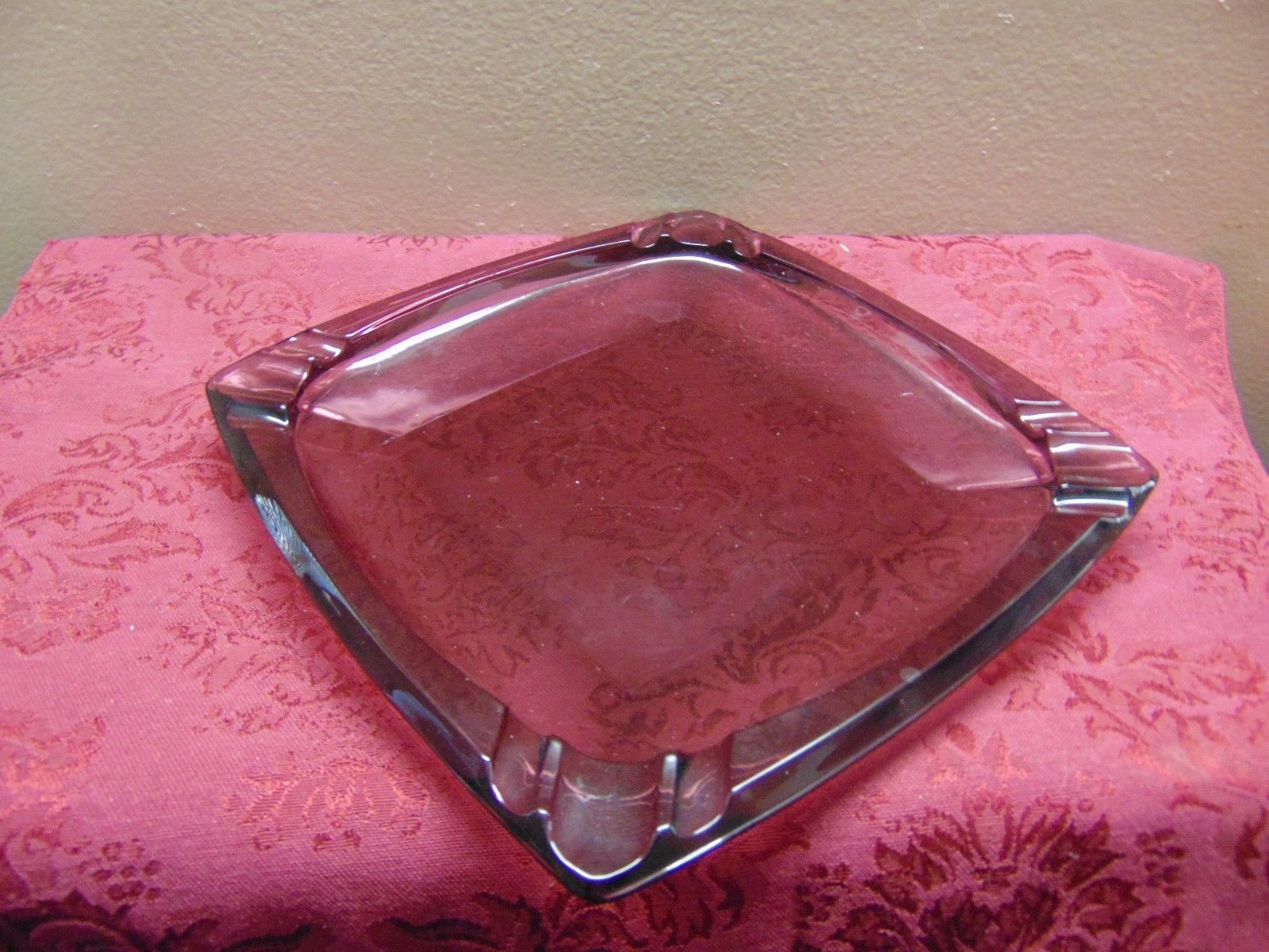 RARE Amethyst Depression Glass Square Ash Tray 8"