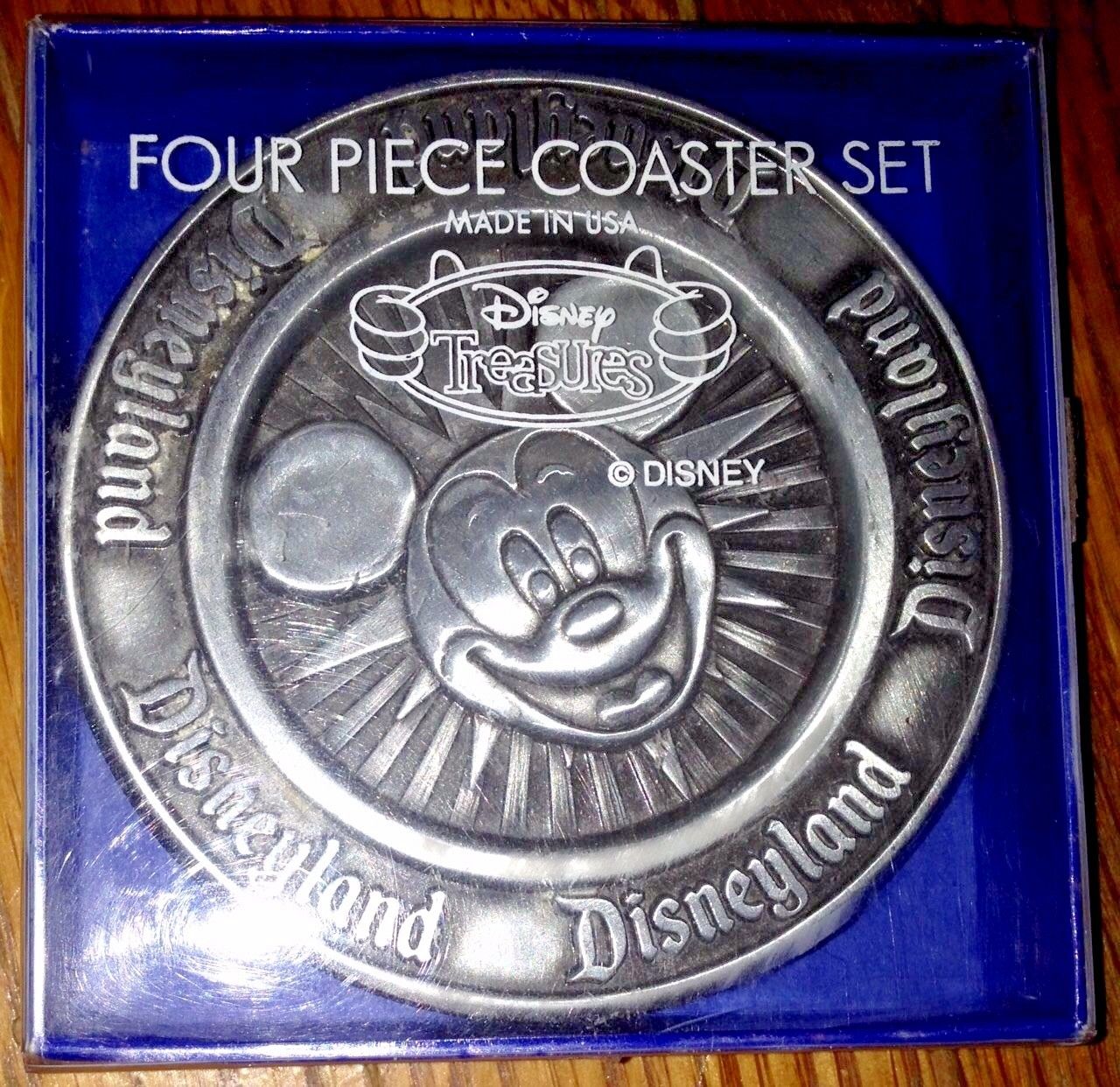 Title (ebay affiliate link): Disney Treasures Disneyland Mickey MousePewter Coasters set of 4.w/original box.