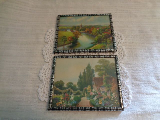 2 VINTAGE METAL / GLASS FRAMED PICTURES - CHURCH / COTTAGE