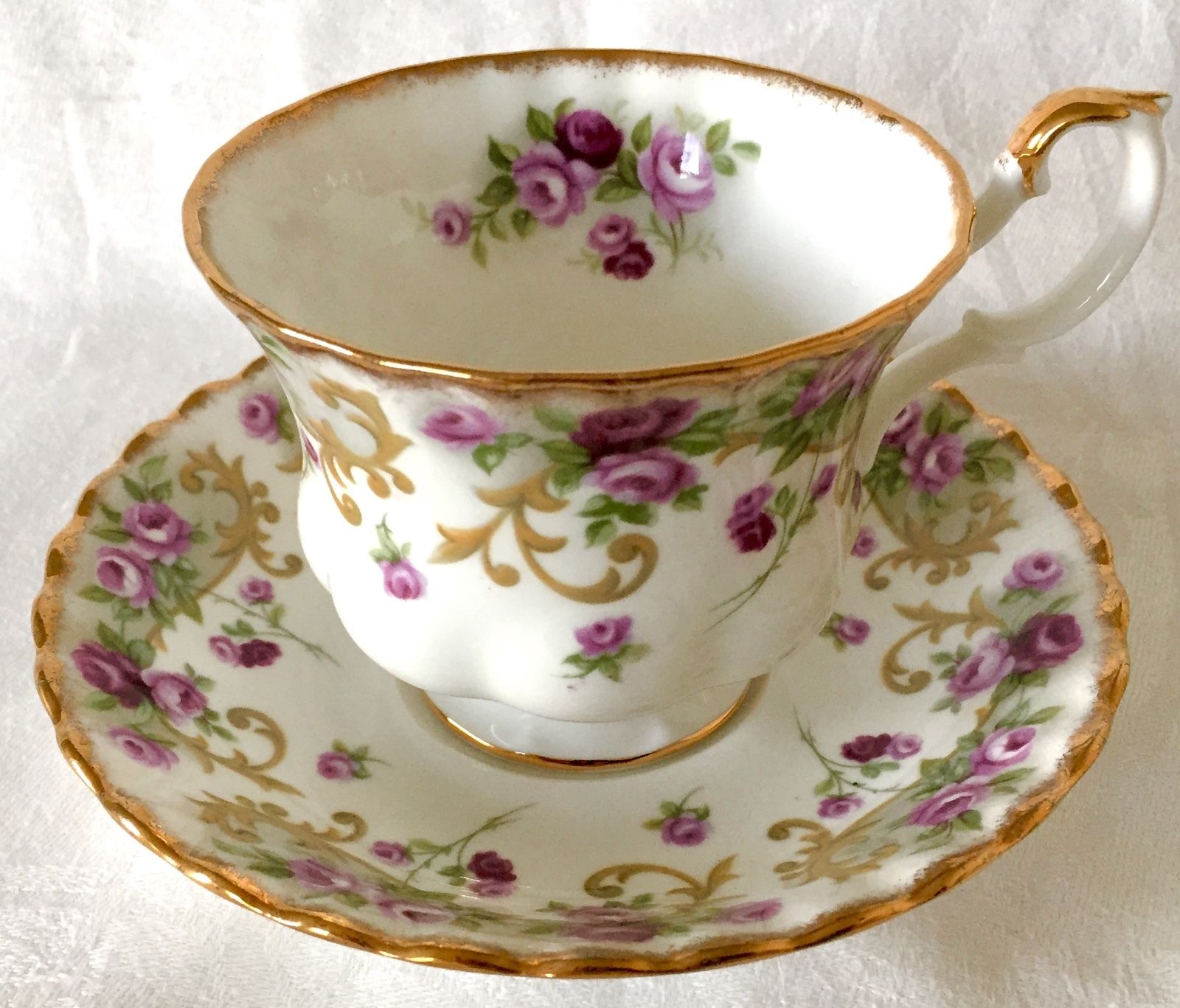 Title (ebay affiliate link): BEAUTIFUL ROYAL ALBERT LAVINIA CUP SAUCER, SHERATON SERIES, PURPLE ROSES