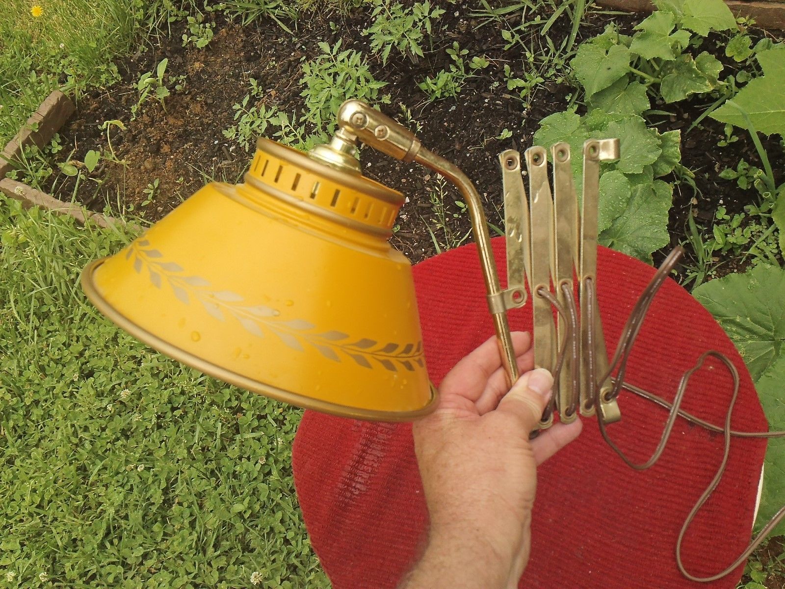 Title (ebay affiliate link): VINTAGE TIN TOLEWARE MUSTARD YELLOW ACCORDION LAMP