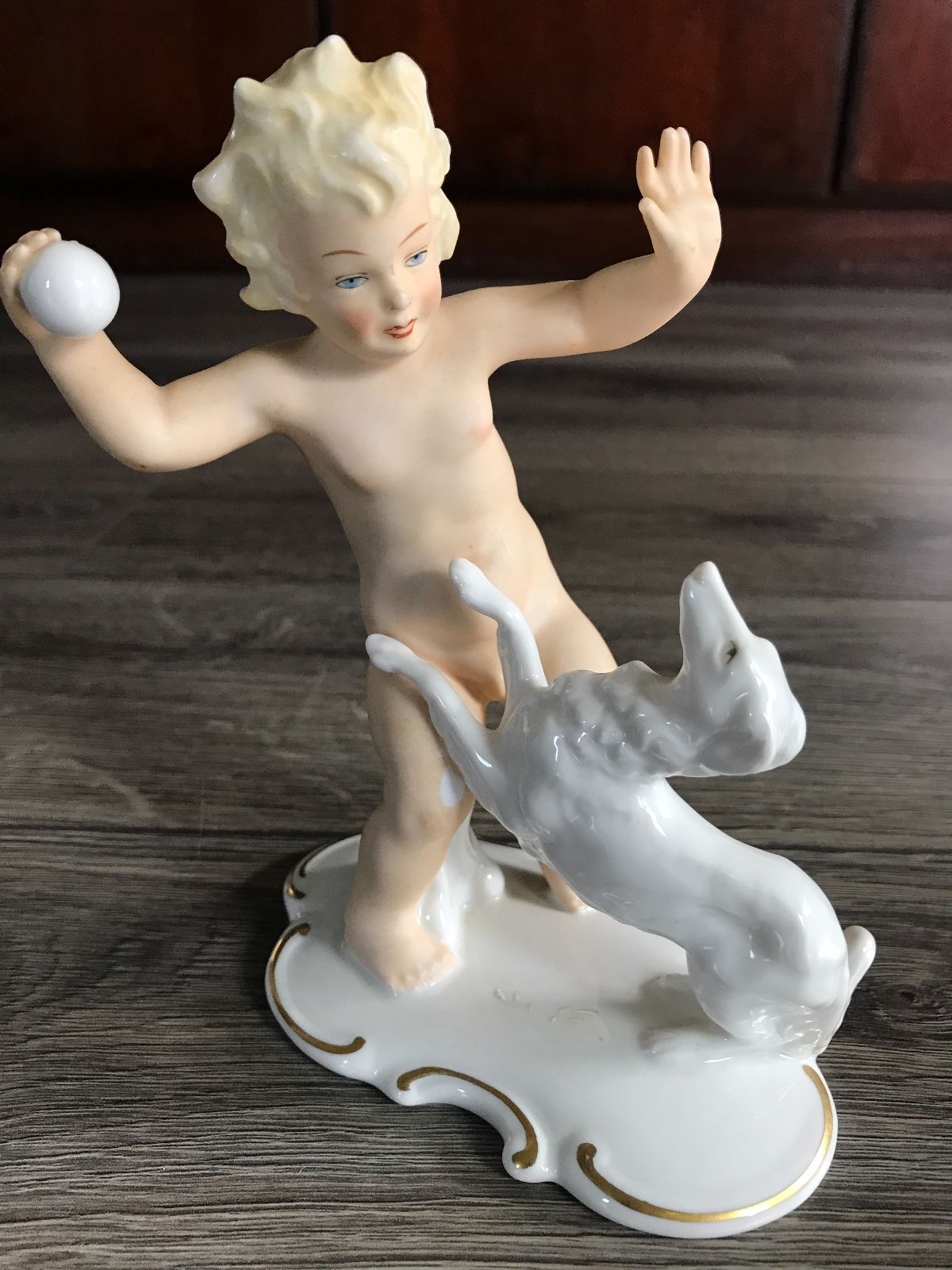 ANTIQUE SCHAUBACH KUNST NUDE BOY WITH DOG BEAUTIFUL