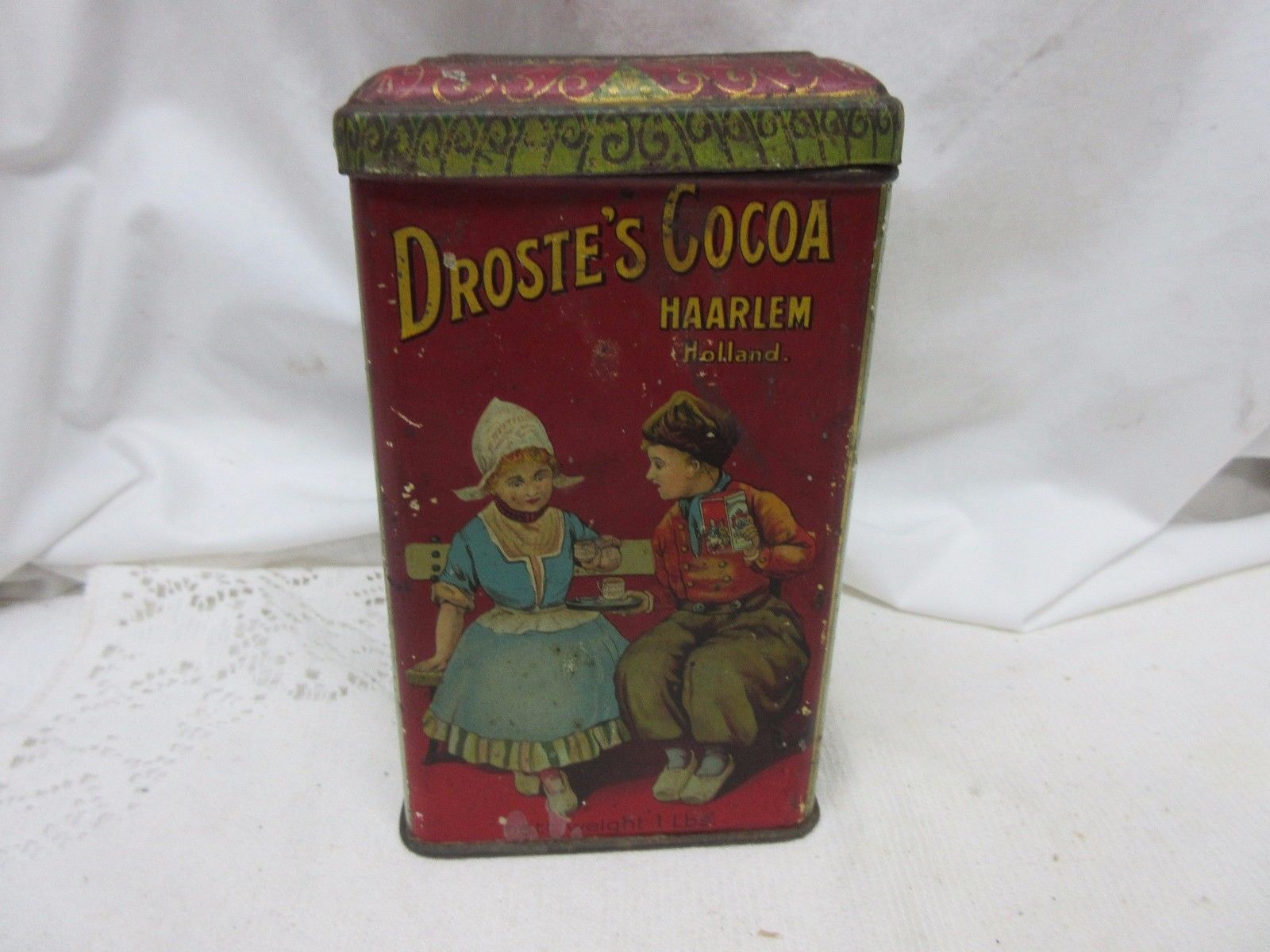 Antique Vintage Droste''s Cocoa 1 lb. Original Tin Can Haarlem Holland