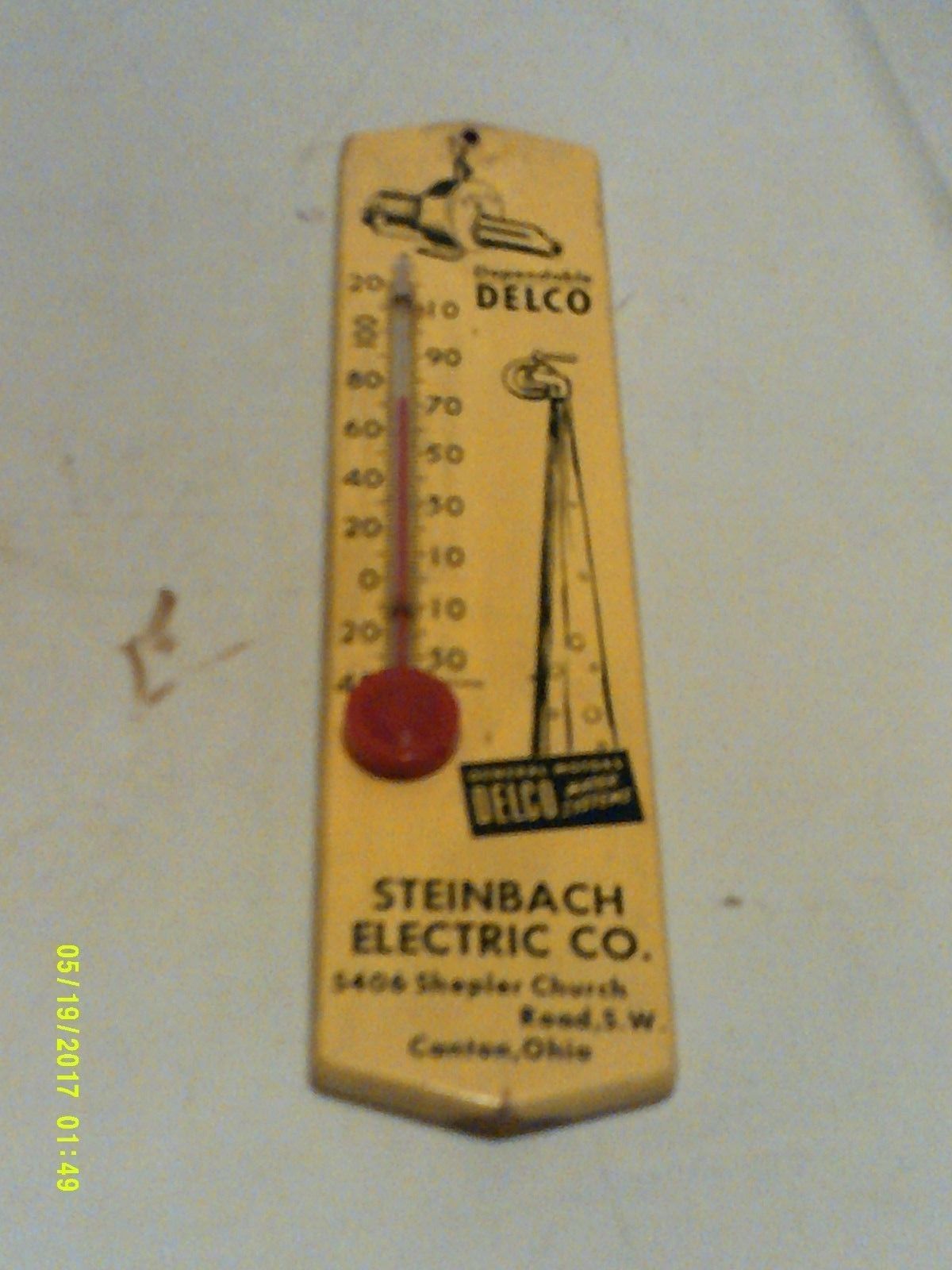 Title (ebay affiliate link): VINTAGE 1950''S STEINBACH ELECTRIC CO.CANTON, OH WOODEN ADVERTISING THERMOMETER
