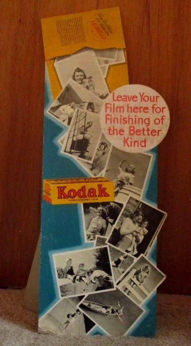 Title (ebay affiliate link): KODAK VERICHROME FILM-LEAVE YOUR FILM HERE-ORIGINAL 1930s ERA STORE DISPLAY SIGN