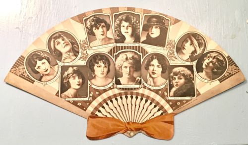 Title (ebay affiliate link): 1920s Fulton Movie Theatre Cardboard Fan w/Actresses, Jersey City NJ Advertising