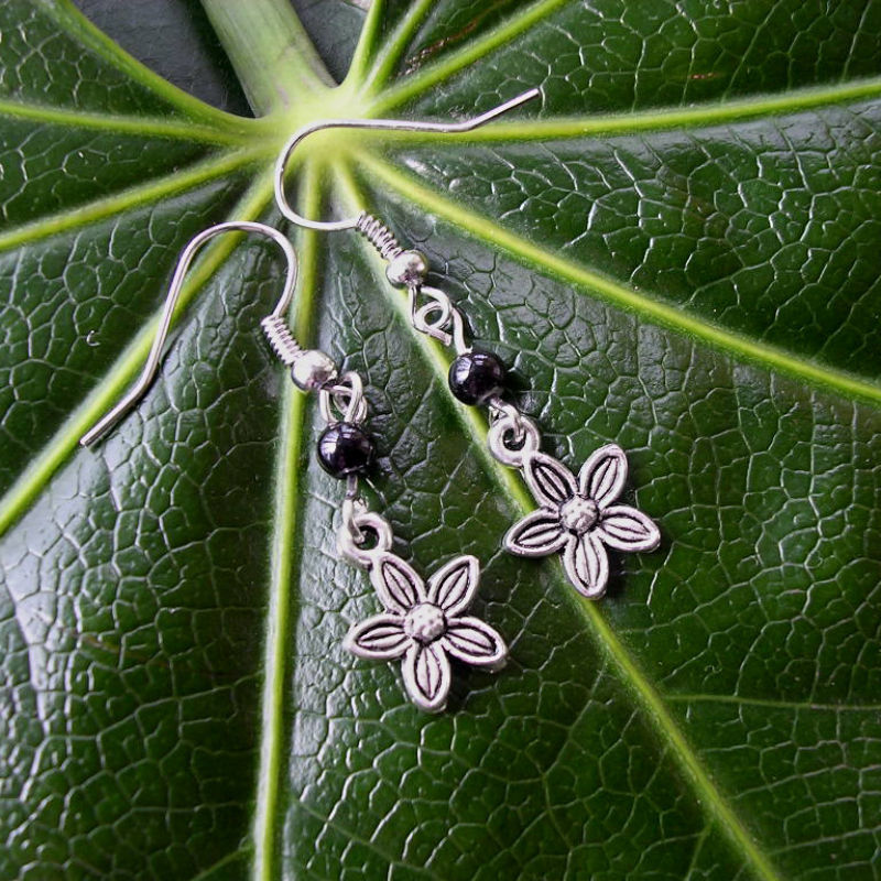 Title (ebay affiliate link): Vintage Antique Silver Flower Black Bead Drop/Dangle Hook Earrings L- 4cm Gift