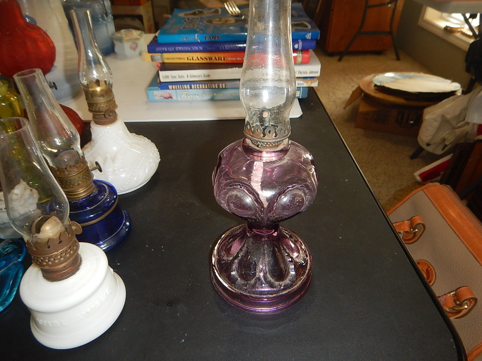 Title (ebay affiliate link): Miniature old dark sun purple glass bullseye miniature lamp quilted