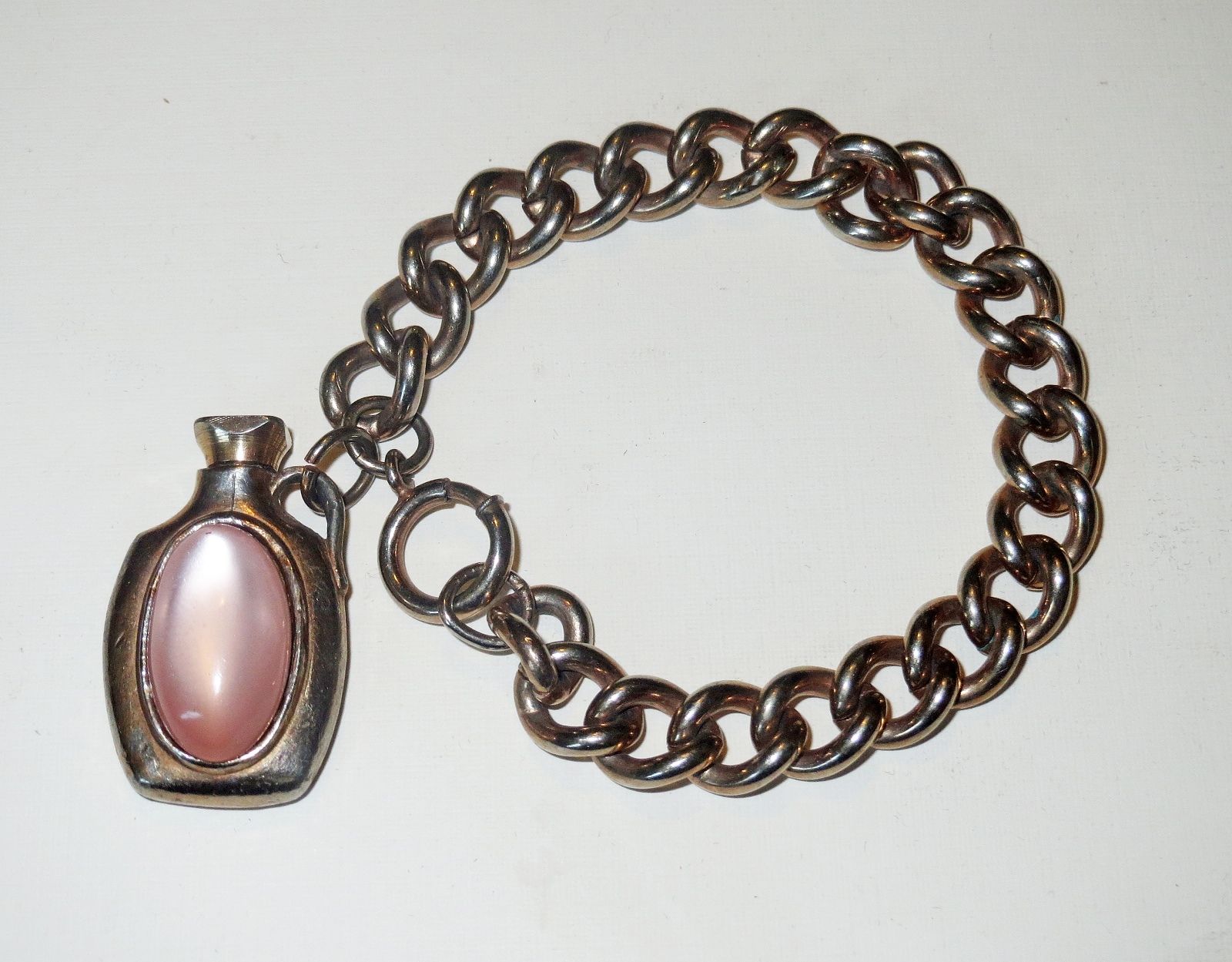 Title (ebay affiliate link): Antique Miniature PERFUME BOTTLE BRACELET Charm - Pink Lucite Bakelite Cabochon