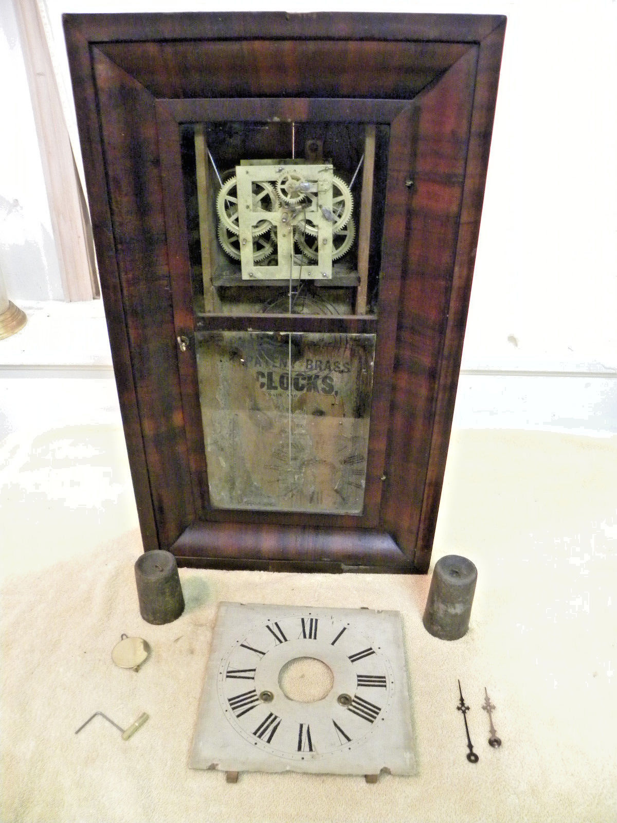 Title (ebay affiliate link): EARLY ANTIQUE AMERICAN GILBERT T & S WEIGHT DRIVEN PARLOR CLOCK AS IS 2A
