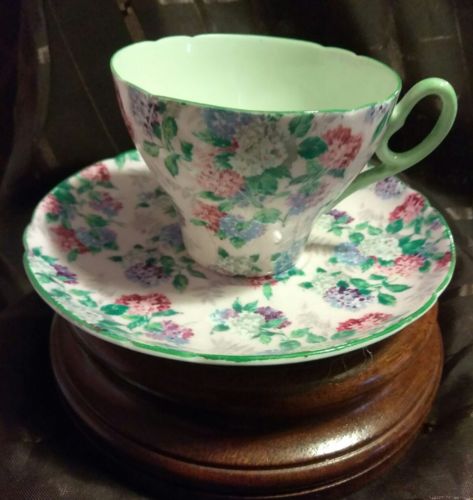 Shelley Fine Bone English China, Cup and Saucer, Pink Summer Glory Chintz