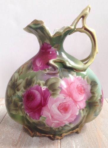 Title (ebay affiliate link): Antique Nippon Hand Painted Green Floral Pink Roses Pitcher Vase, Lovely