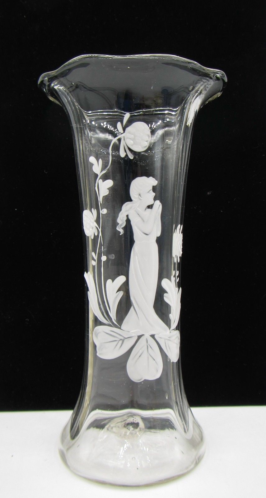 Antique Mary Gregory Clear Glass & White Enameled Girl 6.5" Vase