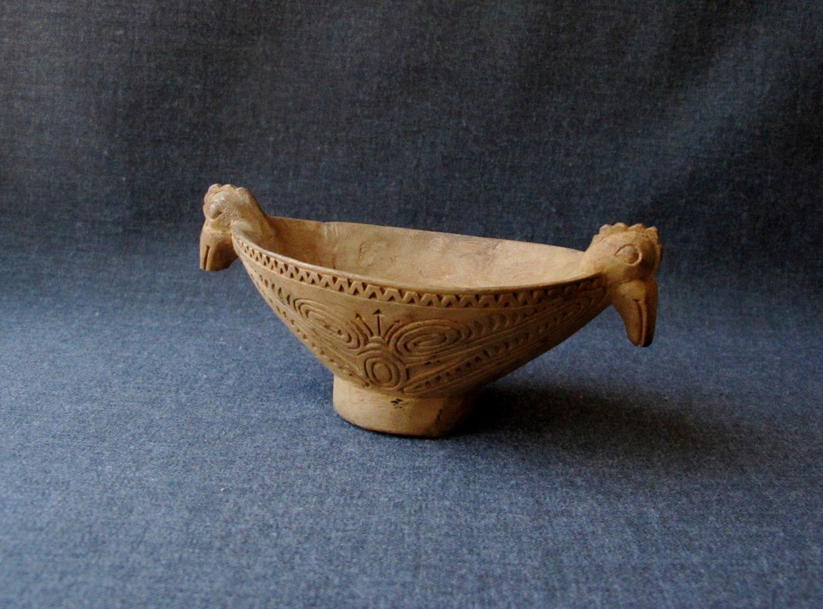 VINTAGE FOLK ART CARVED WOODEN BIRDS HANDLES MINIATURE VASE