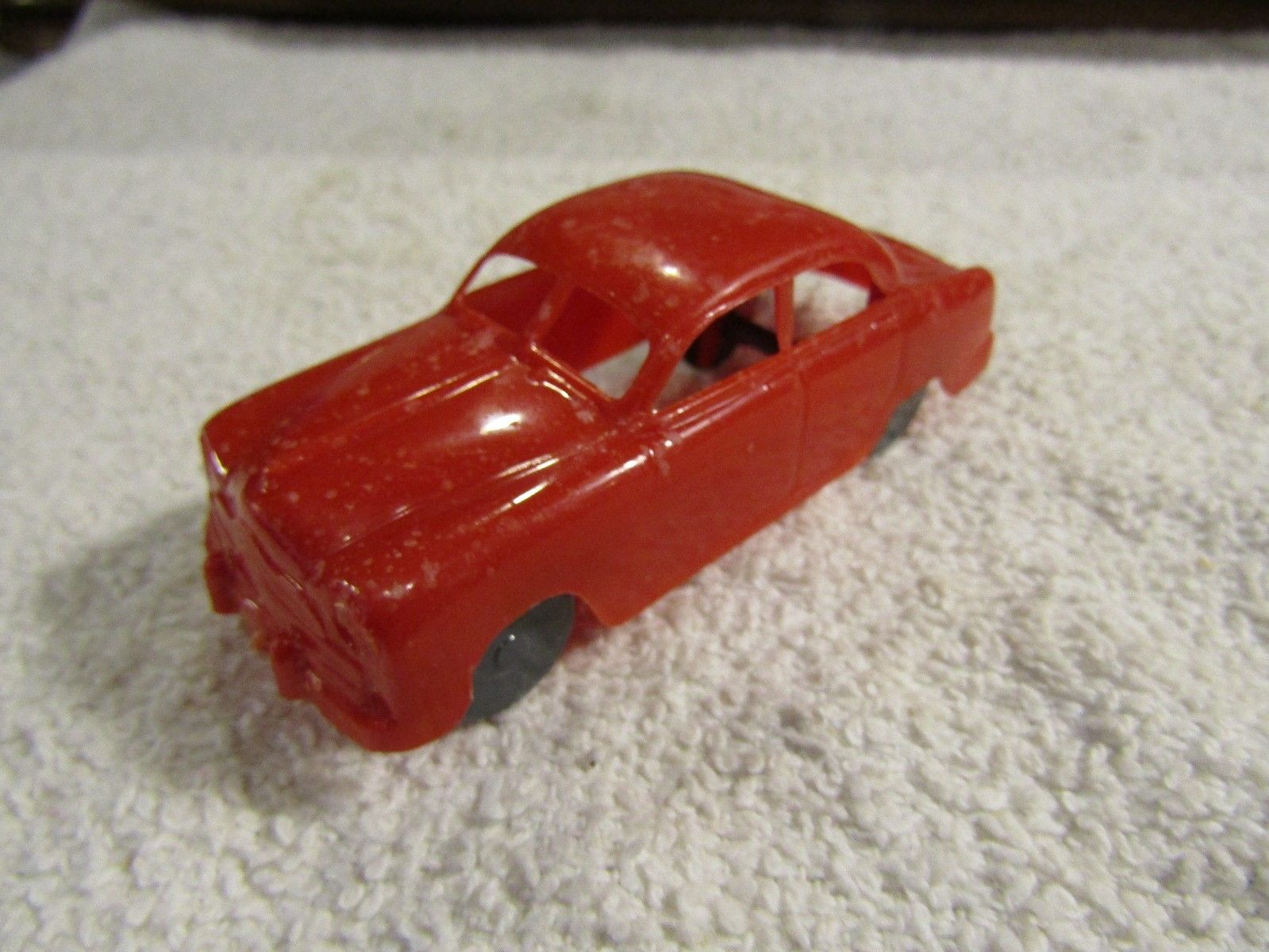 Title (ebay affiliate link): Vintage Marx O Scale 3.5" 1950s 4 Door Sedan Red Auto Car Carrier