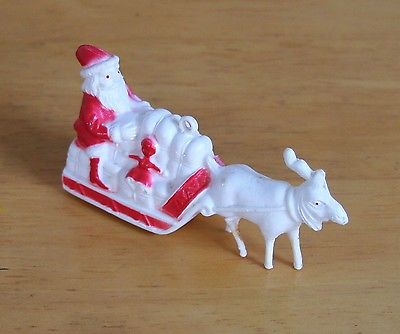 antique 1930''s CELLULOID blow mold SANTA AND REINDEER measures 4" super clean VG