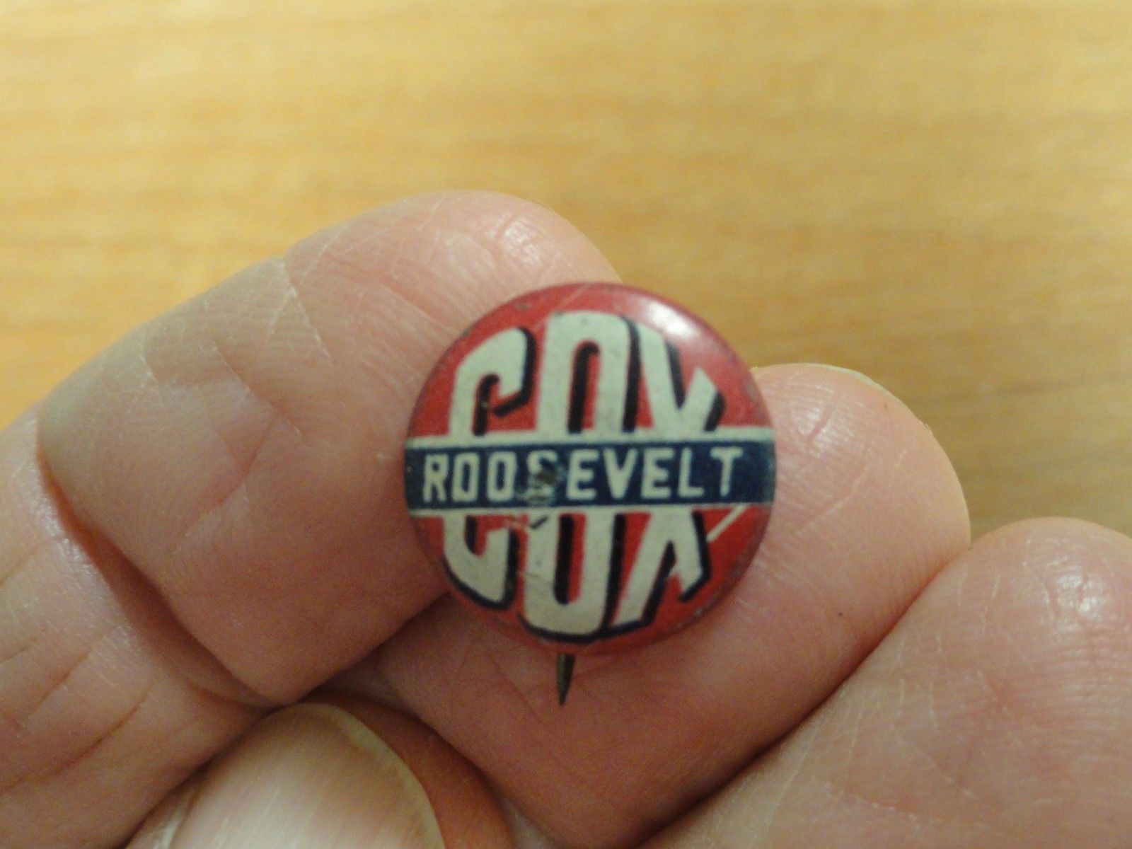 Title (ebay affiliate link): Antique Original Rare 1920 COX and Roosevelt Political Pinback Union Label