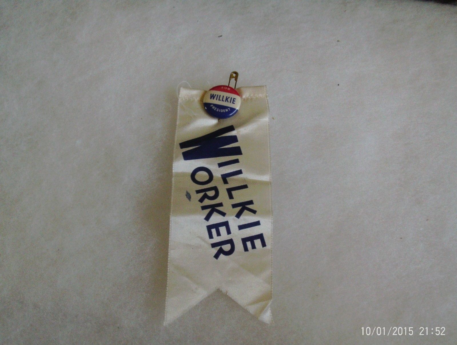 Willkie Worker Political Campaign Pinback Ribbon