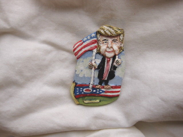 Title (ebay affiliate link): President Donald Trump standing on Obama Flag Novelty Poltical Pin
