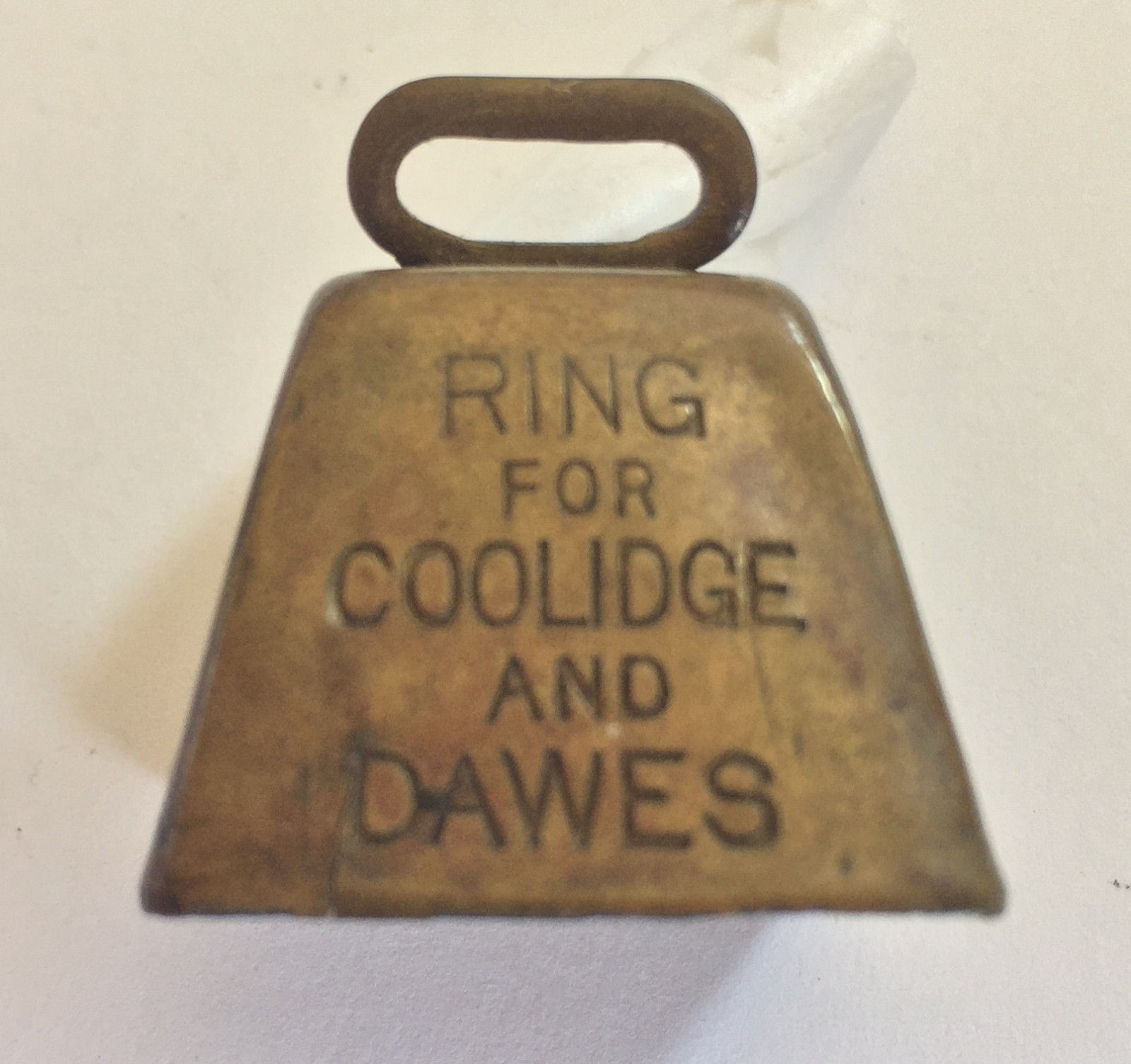 1924 PRESIDENT COOLIDGE VICE PRESIDENT DAWES BRASS POLITICAL CAMPAIGN BELL FOB !