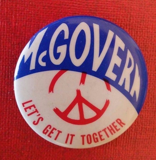 Title (ebay affiliate link): George McGOVERN for President - BROKEN PEACE SIGN 1972 Campaign pin back button