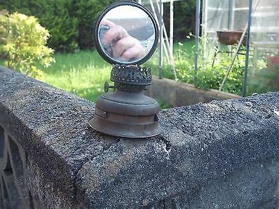 Antique Edwardian c1910 tin oil lamp with mirror wall mounted
