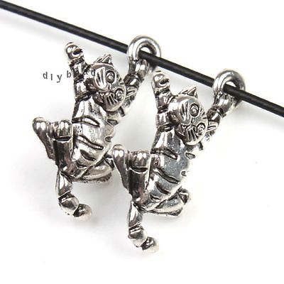 30pcs ON SALE Charms Jewelry Antique Silver Animal Happy Cat Alloy Pendants J