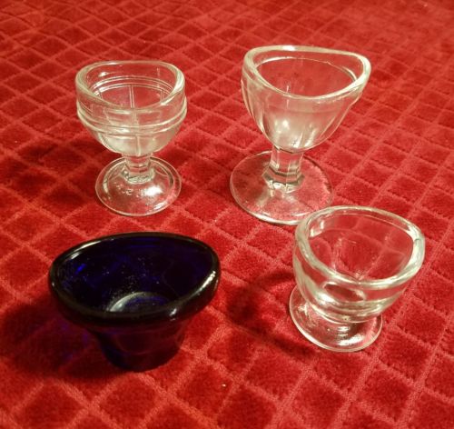 GLASS EYE WASHERS X 4. 3 clear , 1 blue