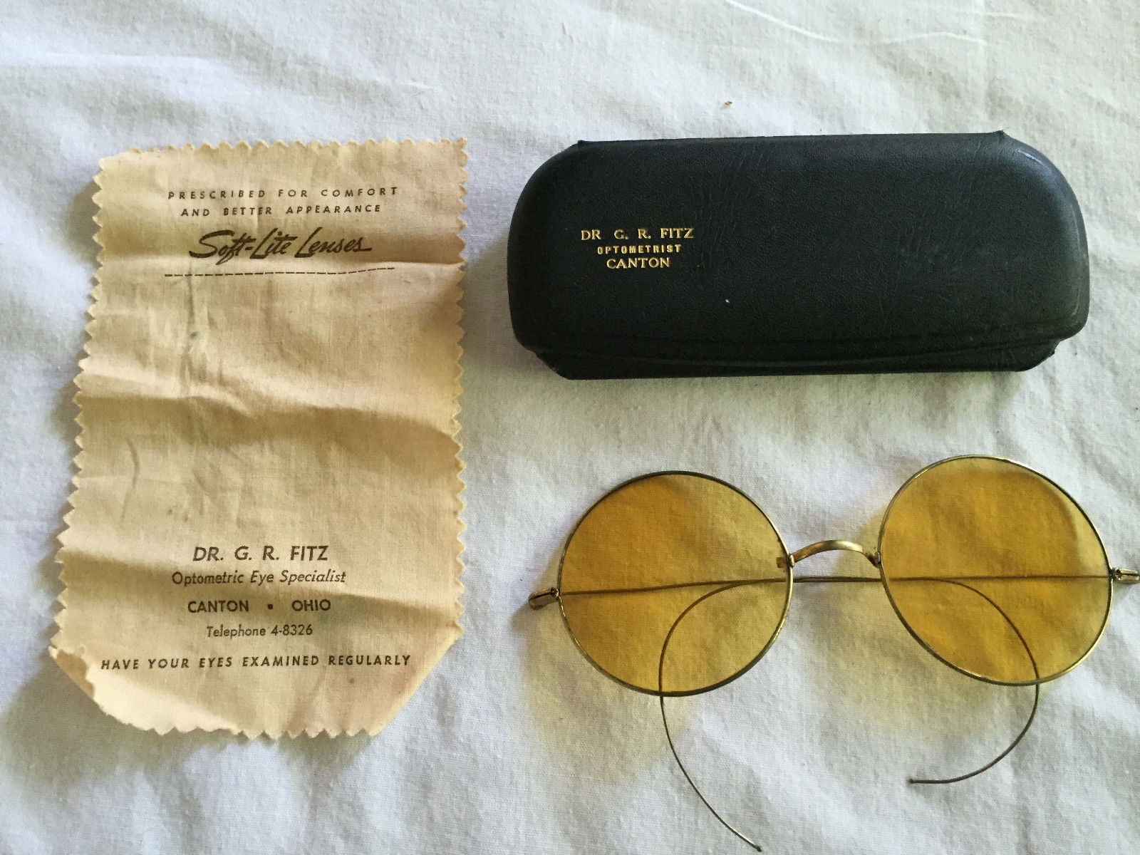 Title (ebay affiliate link): Vintage SPA WIRE RIM SUNGLASSES gold w/ Case CANTON OHIO Dr Fitz Optometrist