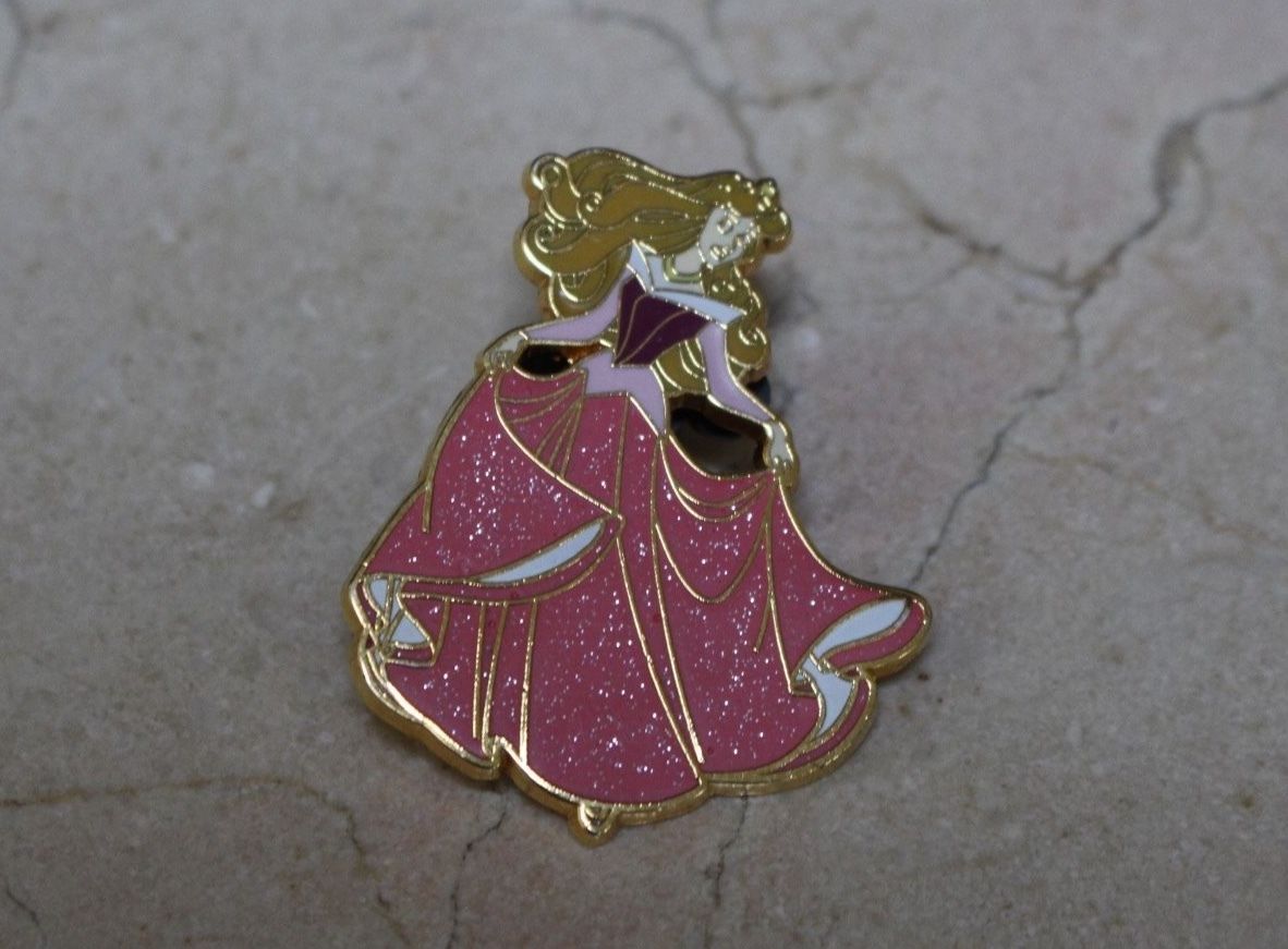 Title (ebay affiliate link): Disney Sleeping Beauty Pink, Glitter, Full Body Pin (2008)