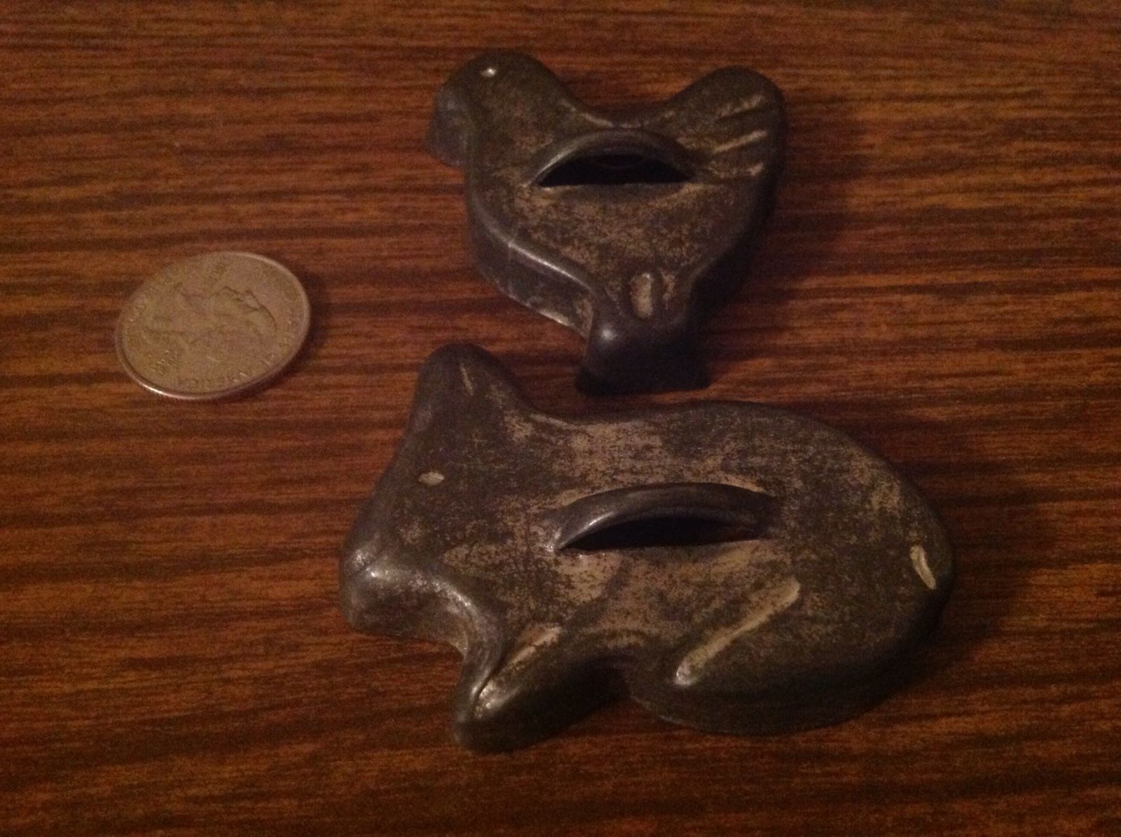 cookie cutters, old tin primitive,RABBIT CHICKEN great patina set of 2~~ sm.size