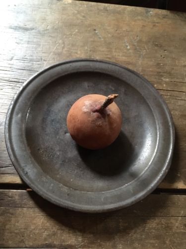 Title (ebay affiliate link): RARE Antique Early Large Tin Plate Lipped Dish Faux Orange Primitive Fruit AAFA