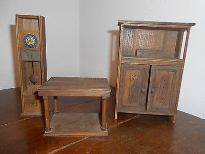 Lot of vintage or antique Miniature Furniture Doll House Hutch Table Clock