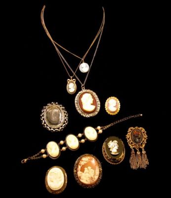 Title (ebay affiliate link): LOT 10 VTG ANTIQUE ESTATE CAMEO BROOCH ETC WEAR REPAIR