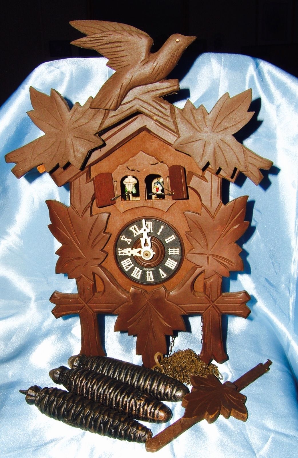 Title (ebay affiliate link): BEAUTIFUL ANTIQUE BLACK FOREST WOOD TWO DOOR 3-WEIGHT CUCKOO CLOCK GERMANY