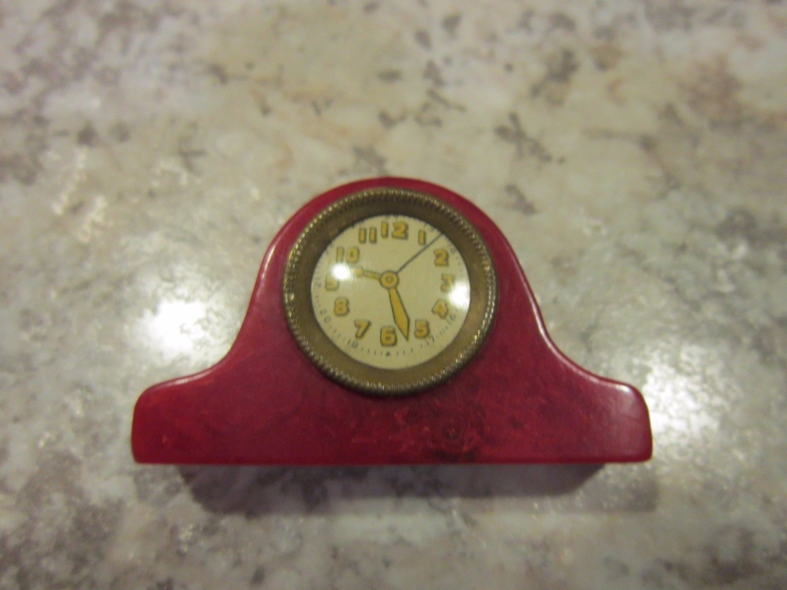 Vintage Antique 1940''s Bakelite Pencil Sharpener Mantle Clock Red Swirl Retro